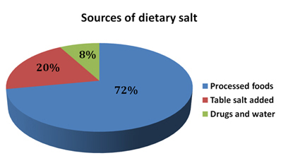 FSRG Dietary Data Brief -- No. A wide variety of foods contribute to sodium intake. Most dietary sodium comes from sodium added during food processing or during cooking in restaurants. ... Return Document
